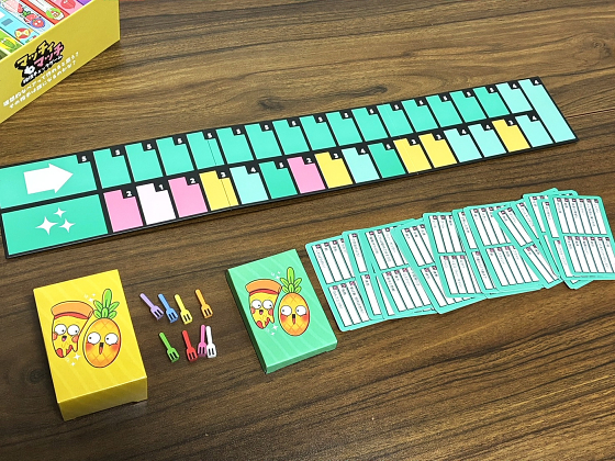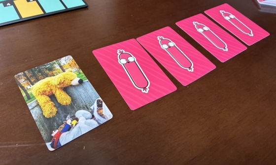 そんな感じでテーマカードをめくってはテーマに合った写真カードを選び、参照プレイヤーと一致していればフォークトークンを前に進め、最終的にゴールマスに早く到着したプレイヤーが勝利となります。
