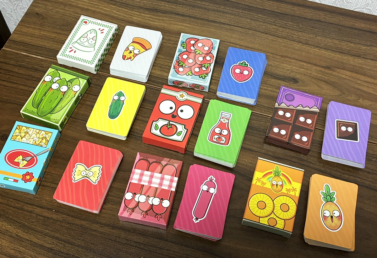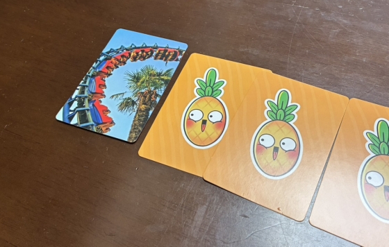 次に、各プレイヤーに写真カードのデッキを1セットずつ配ります。この写真カードデッキの裏面の色がプレイヤーカラーとなります。
