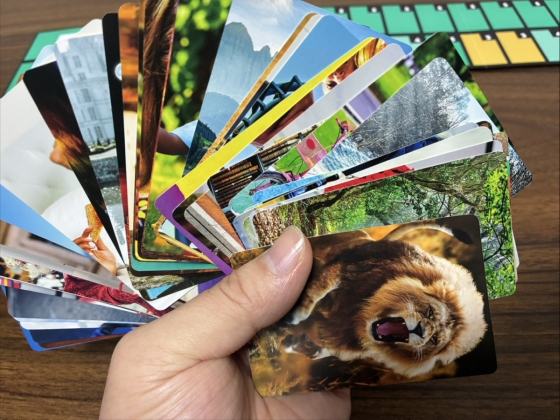 写真カードを指定枚数分選んだら、自分の前に左から右へ「テーマとの関連性が高い順」で裏向きに並べます。