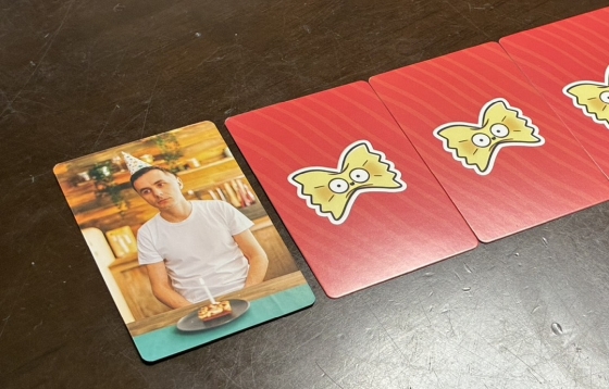 5枚目まで表向きに公開したら場に公開した自分の写真カードを回収しラウンドが終了。次のラウンドへと進みます。次のラウンドでもやることは同じで、まず1人のプレイヤーが1~12の番号を宣言しテーマカードをめくります。2ラウンド目のテーマは11番の「迷信」になりました。