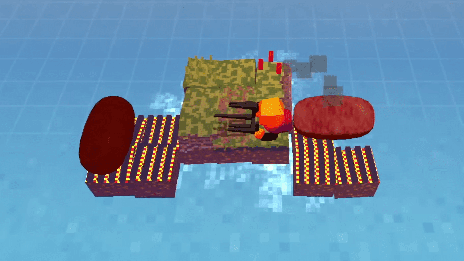 舞台は海に囲まれた島。島には普通の地面とバーベキューグリルの地面があります。地面の上にはフォークを持ったプレイアブルキャラクターとソーセージが置かれます。
