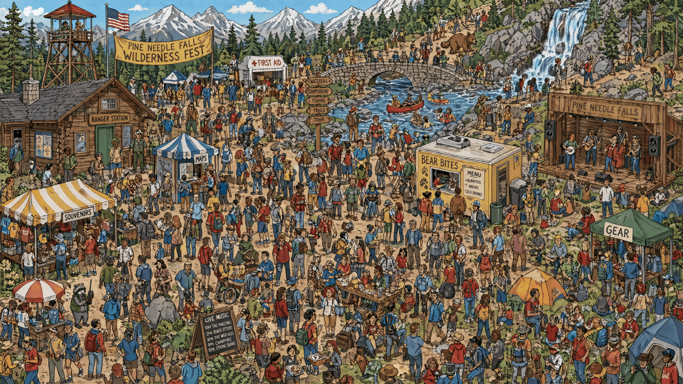 まずは基準として、OpenAIの「gpt-image-1」で生成した画像が以下。パッと見たところ『ウォーリーをさがせ!』がよく再現されているように思われますが、顔などの細かい部分はつぶれていたり、明らかに脚や腕が変な部分があったりします。