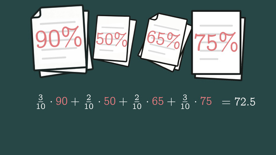 期待値は単なる平均ではなく「重み付き平均」だと整理されます。試験の平均点で、全部同じ比重なら普通の平均になり、重要な試験ほど重みが大きいなら加重平均になるのと同じで、期待値ではその重みが「確率」になっています。
