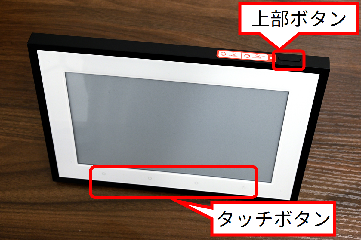 本体上部右端に「上部ボタン」、下部に4つの「タッチボタン」が並びます。