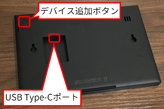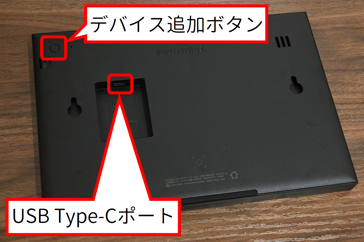 背面にはペアリング用の「デバイス接続ボタン」や充電用のUSB Type-Cポートがあります。