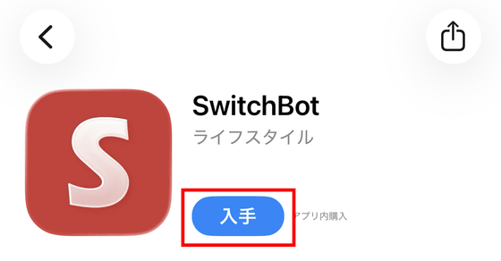 今回はiPhoneと接続するので、App StoreでiOS版アプリをダウンロード。「入手」をタップ。