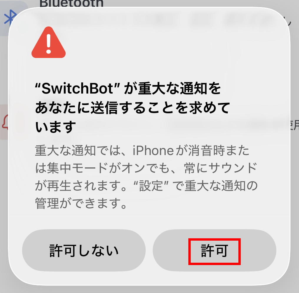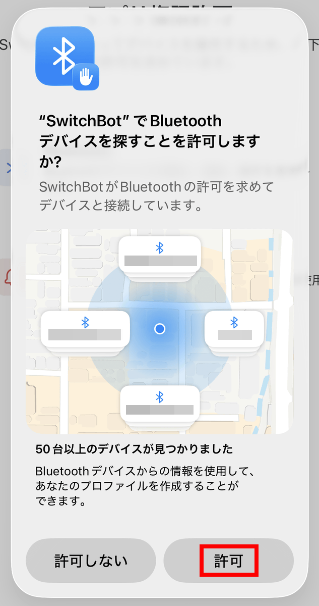 Bluetoothデバイスとの接続をするので「許可」をタップ。