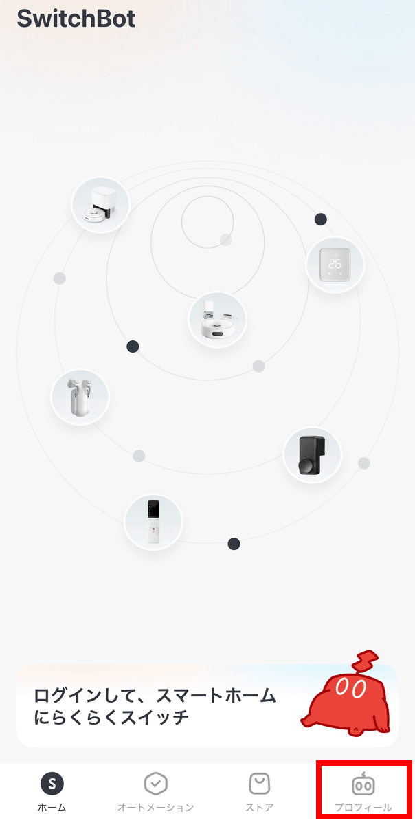 引き続き、端末の接続に進みます。「プロフィール」をタップ。