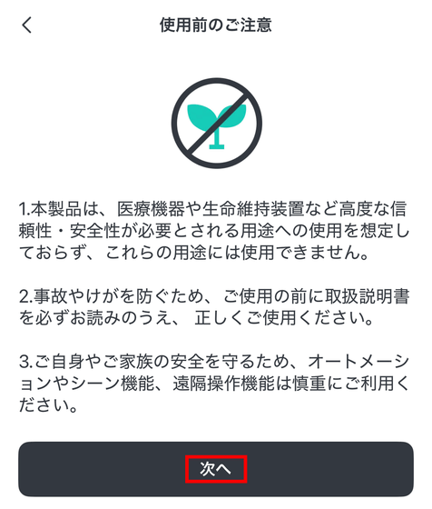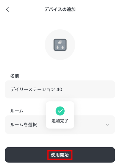 「スマートデイリーステーション」は使用時に、スマートフォン向けの「SwitchBot」アプリと接続してネットワーク接続情報を設定する必要があります。アプリと接続していない状態のスマートデイリーステーションは、画面に「デバイスをSwitchBotアプリに追加してください」と表示されます。