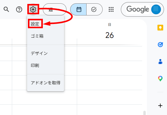 今回はGoogleカレンダーを取り込むことにしました。PCで同期したいカレンダーのあるGoogleアカウントにログインし、Googleカレンダーの「設定」を開きます。