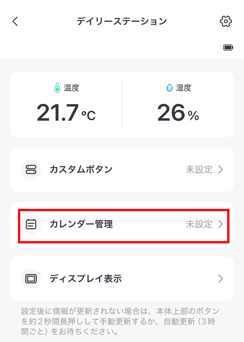 アプリに戻って、デイリーステーションを選択して「カレンダー管理」をタップ。
