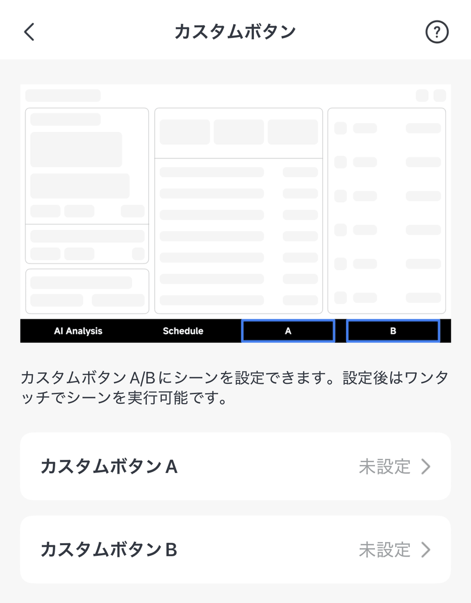 カスタムボタンにはSwitchBot製品の操作を複数コントロールする「シーン」を登録することが可能。