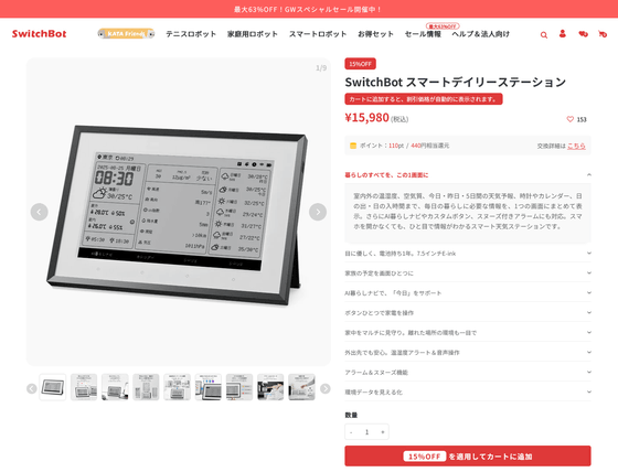 「スマートデイリーステーション」は定価が税込1万5980円。2026年5月6日(水)まではセールが行われていて、公式オンラインストア・Amazon.co.jp・楽天市場で、15%引きの税込1万3583円で購入可能です。